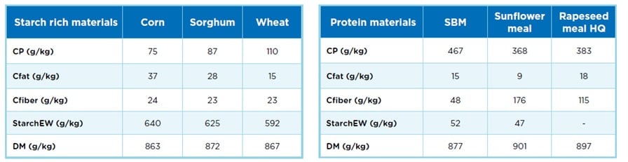 When formulating with these alternative raw materials, one must keep in mind that there can be a lot of variation among different raw materials of the same nutritional category. Below is an overview of some commonly used raw materials as an example.